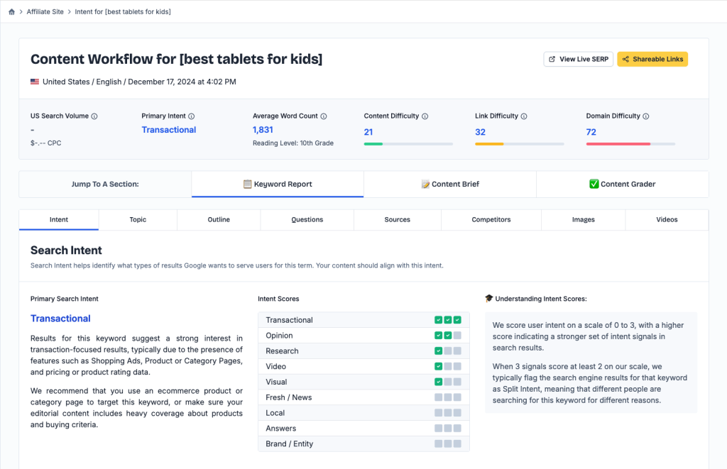 - Build a brief + outline and evaluate clarity (not just volume of suggestions).